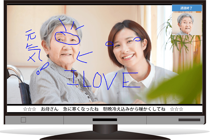 在宅高齢者と介護施設や訪問看護をつなぐオンライン介護・オンライン診療向けのビデオ通話アプリです。